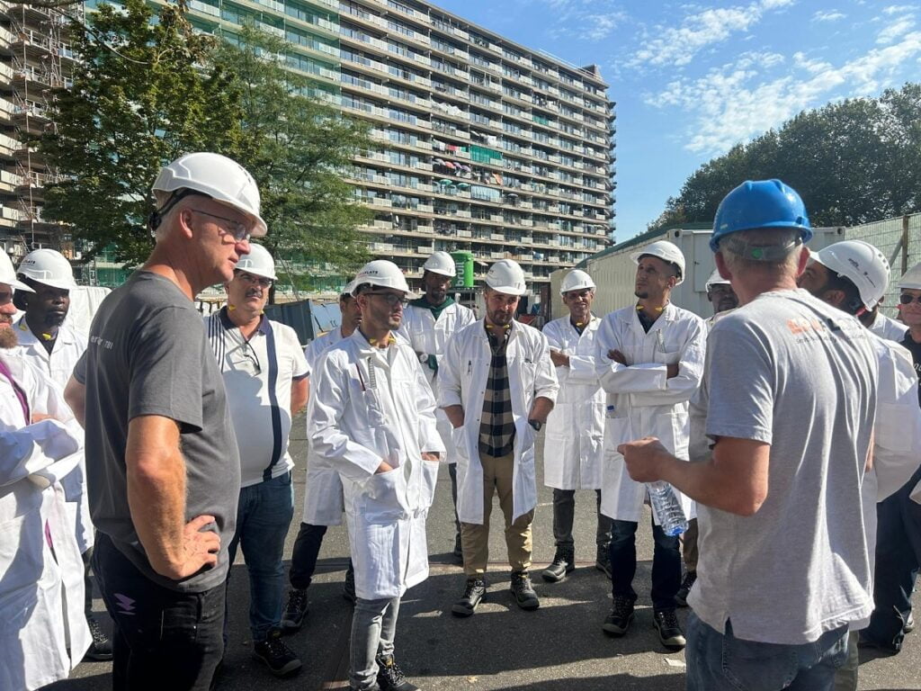 Een van de bijzonderheden aan De Bouwpraktijk is dat die vanaf het eerste begin volledig geïntegreerd is in de praktijk van de bouw. De loods waarin de lessen plaatsvinden – inclusief taallessen en VCA – staat op het bouwterrein en de praktijklessen worden gegeven door mensen die zelf ook op deze bouw werken. Na een introductieperiode lopen de deelnemers ook in de praktijk mee op dezelfde bouw met dezelfde mensen en bedrijven. De renovatie van ERA flat de Schermerhoek in Capelle aan den IJssel leende zich daar ook voor omdat dat een langlopend project was. Daar draaiden al drie trajecten. Daarvoor draaide er één bij een ERA flat in Ommoord en inmiddels is in Barendrecht eenzelfde opzet gestart, in samenwerking met het TBI Praktijkfonds.