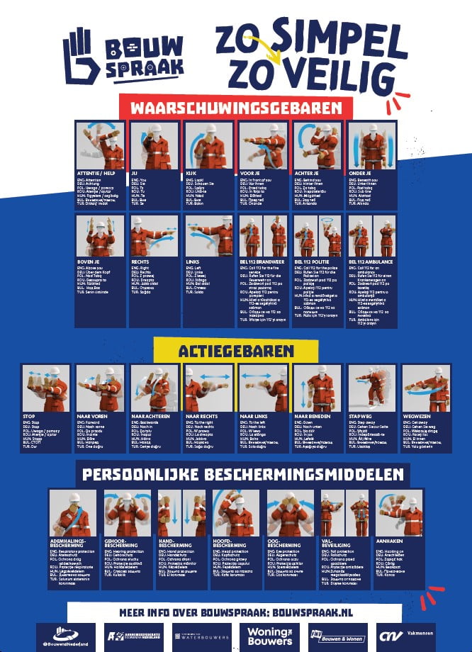 “Hijsen. Zakken. Zwenken. Uitkatten. Aftoppen. Als je die commando’s niet verstaat, wordt een torenkraan een dodelijk wapen”, zei kraanmachinist Sjack Rovers enkele jaren geleden tegen vakblad Aannemer. Sindsdien is het aantal arbeidsmigranten flink gestegen. Taalbarrières in de bouw zijn dagelijkse kost en de risico’s op gevaarlijke situaties navenant .