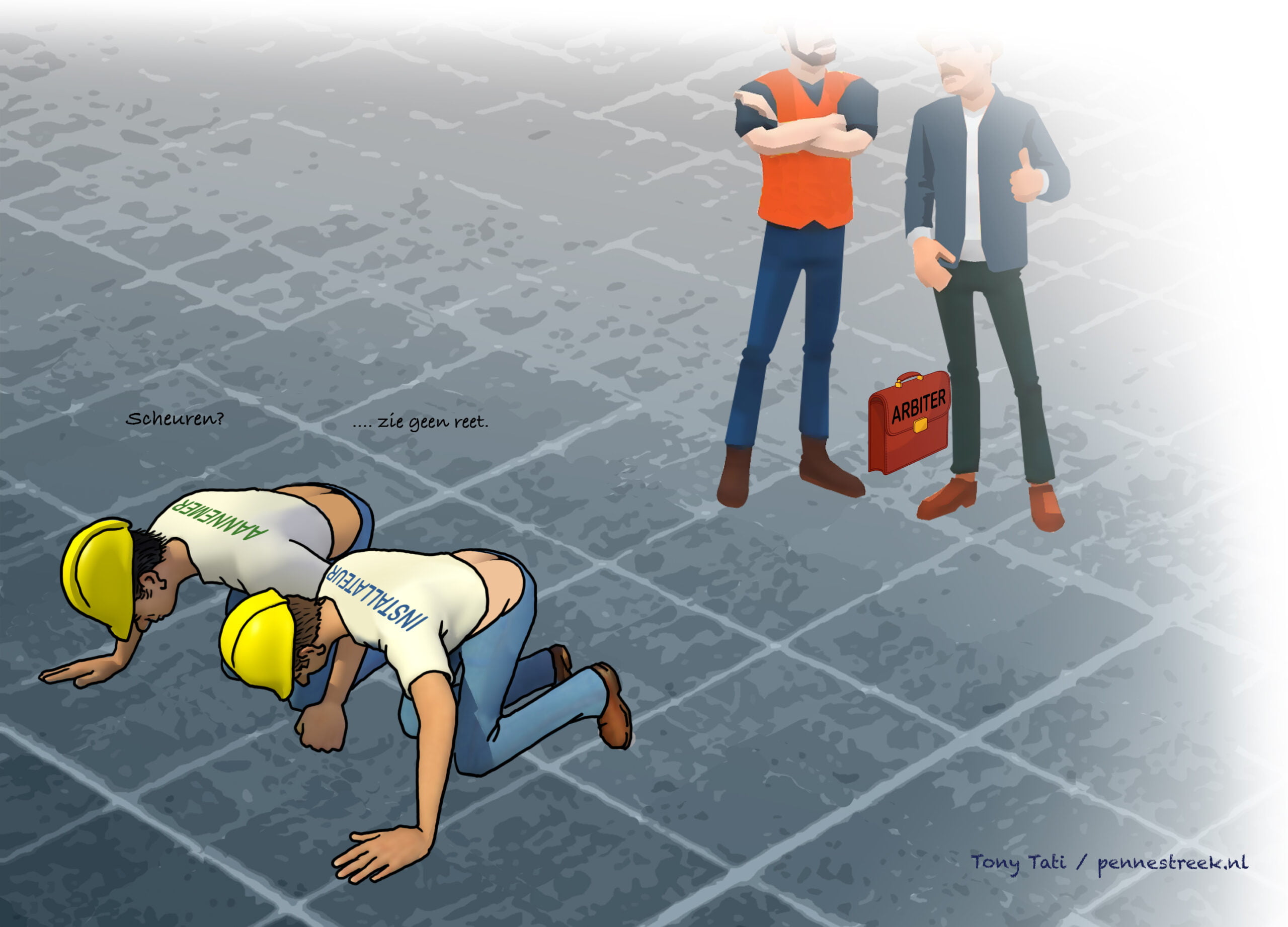 Scheurtjes in de tegelvloer van hun nieuwe woning. Een paar maanden na oplevering zien de opdrachtgevers ze zitten. De aannemer wijst naar de installateur, die per ongeluk heet water door de vloerverwarming liet stromen tijdens de bouw. Of is er iets anders aan de hand?