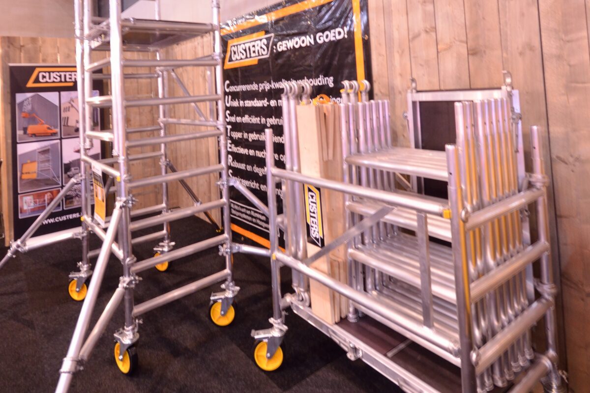 Een steiger die door 1 persoon is op te bouwen en opgevouwen in een bestelbus als trolley vervoerd kan worden. In navolging van Altrex heeft Custers een éénpersoons rolsteiger ontworpen die met allerlei slimmigheidjes is uitgerust. Custers presenteert de steiger en de trolley op de Bouwbeurs.
