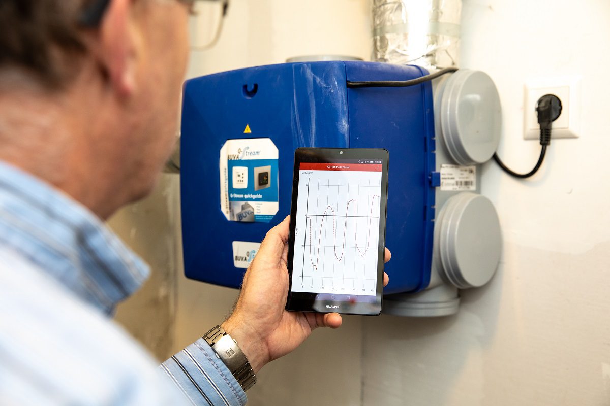 Met de A(ir)T(ightness)T(ester) kan de luchtdichtheid van gebouwen veel sneller en eenvoudiger gemeten worden dan met een blowerdoortest. De ATT maakt daarbij slim gebruik van het aanwezige ventilatiesysteem. Het drukvaatje van de ATT dient als referentie (druk in de woning als het ventilatiesysteem uit staat). Het ventilatiesysteem wordt een aantal keren aan en uitgeschakeld, de hierdoor veroorzaakte drukvariaties worden gebruikt om de luchtdichtheid te berekenen. Waar de blowerdoor nu nog als steekproef wordt ingezet, kan met aanvulling van de ATT de luchtdichtheid van elke woning worden gemeten. Meer over de ATT in de komende editie van Aannemer.